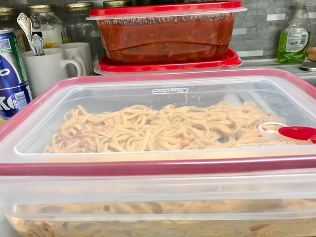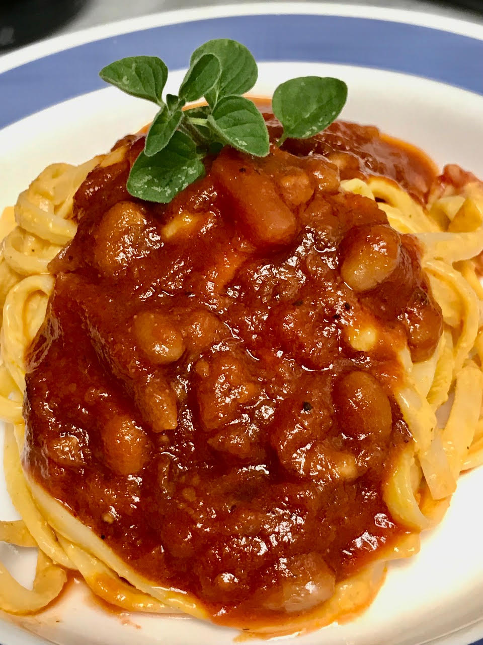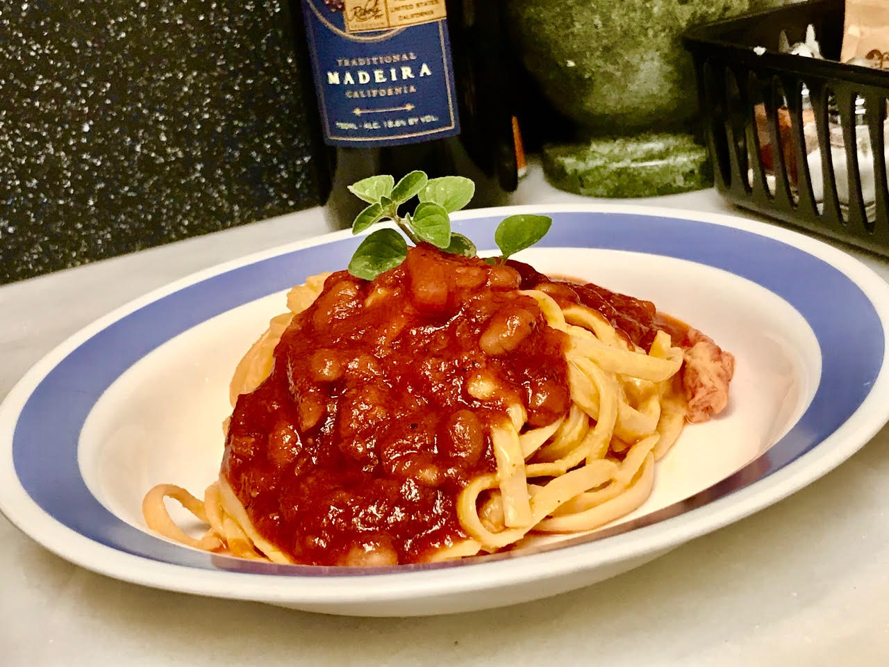 Serve as soup or sauce. Pasta is optional. Today I’ll go with linguini tossed with Creamy French dressing with fresh oregano added. It was indeed festive!