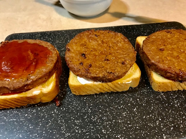 IMPOSSIBLE and BEYOND are two of the top selling and best textured and flavored plant- based burgers on the market today. Gordon’s whether they did purposely did this or not, created or somebody created for them the best of both burgers. I’m satisfied.