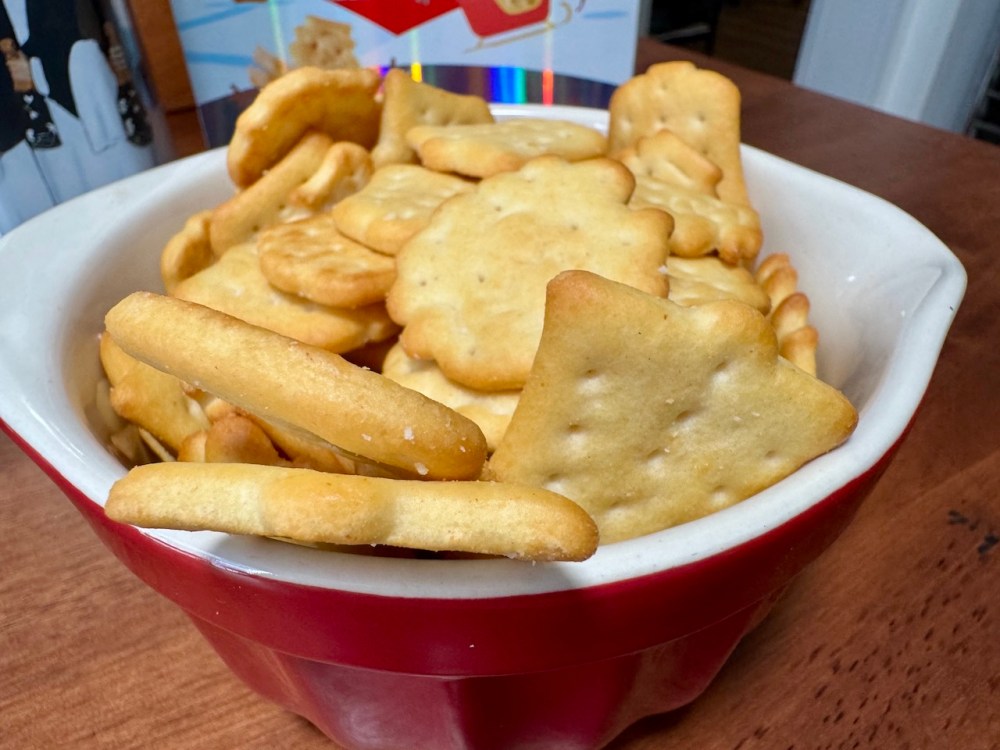 NOT YOUR USUAL RITZ. Limited Edition for the holidays. Puffy, lighter, thicker, almost tender. Still animal-free. 5 crackers 80 calories. Not bad.