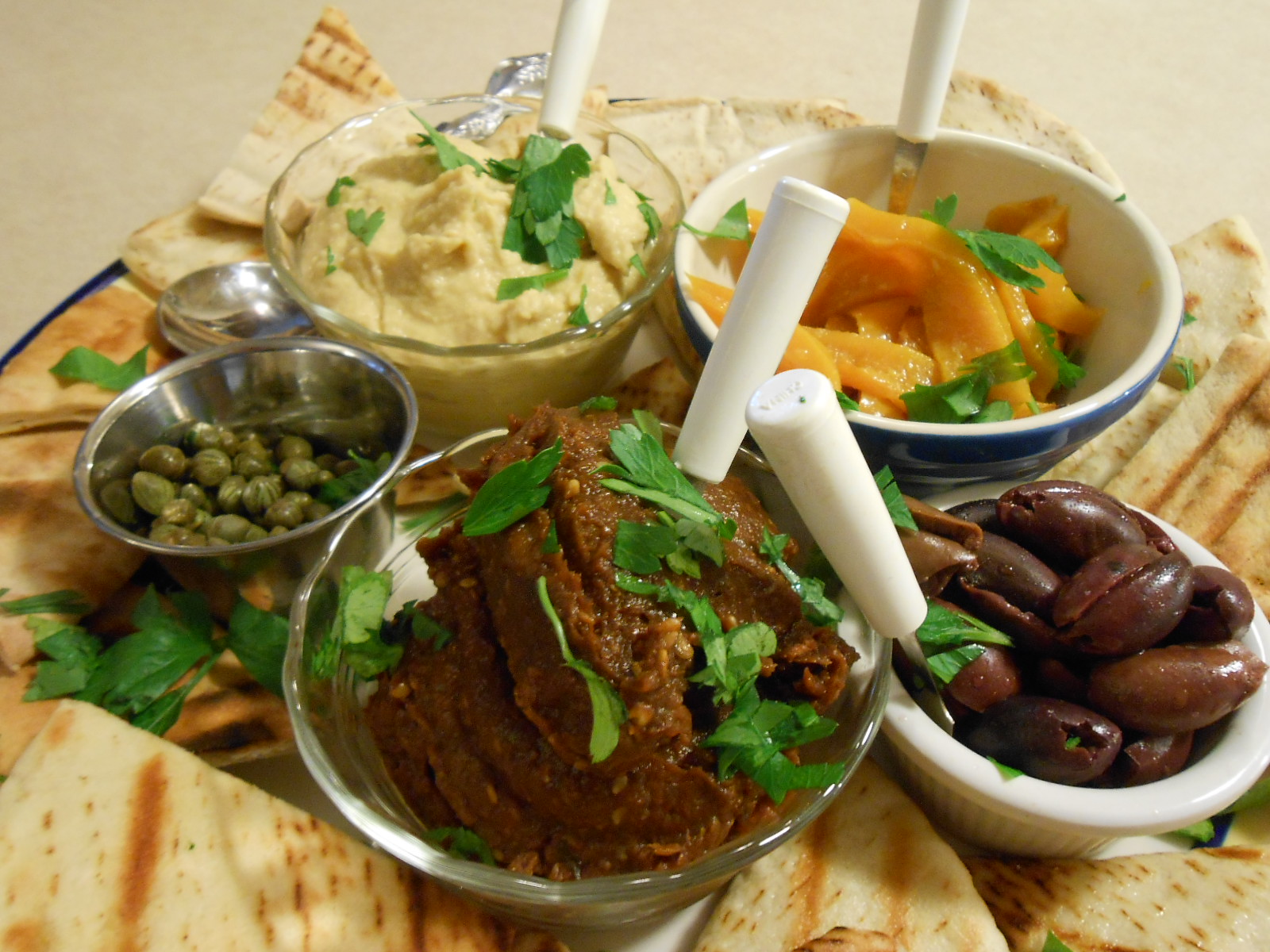 HORS D’OEUVRE PLATE WITH CAPONATA BABGANOUSH